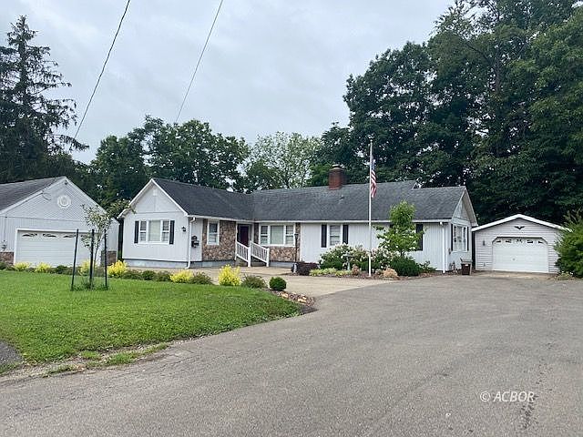 This charming home sits at the end of the street and has an open floor plan with large living room with gas fireplace and built-ins, opened to dining room and nice modern kitchen with breakfast bar and fully applianced. Features 3 bedrooms and 1.5 baths, finished family room in walk-out basement, 1st floor laundry, nicely landscaped with private setting and covered deck on back overlooking the woods, two detached garages, two car with two workshops in the back and another 1 car detached for your hobby! Ready to move into, Call today! Extra perk, equipped with safe in the basement.
