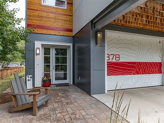 Welcome to 378 Pearl Street, a thoughtful design by Erik Lobeck features 2-bedrooms, 2.5-baths, 1,482 sq ft high-performance home in one of Steamboat's most desirable neighborhoods. Located in the Brooklyn area, you are steps from downtown, the Yampa River and Howelsen Hill, with year-round recreation: Nordic skiing, hiking, biking and more. This home balances style, comfort, and functionality. Radiant-heated polished concrete floors on the first level pair beautifully with floating cork floors in the open living space upstairs. Soaring 9 foot ceilings vault to 13 feet, offering a bright & airy atmosphere. The chef's kitchen boasts quartz counters, a 5-burner stove with double convection oven, vented hood, appliance garage, and abundant storage including a built-in pantry. Entertaining is effortless with direct deck access from the living and kitchen areas. A sleek gas fireplace, built-in entertainment center, surround-sound wiring, dining nook, and powder room complete the living space. The deck offers uninterrupted views of Emerald Mountain, while low-maintenance metal siding with integrated insulation and concrete driveway (parking for three) ensure lasting durability. The oversized 1-car garage has radiant-heated floors, built-in benches and storage. Upstairs, hydronic radiators provide zoned heating, complemented by double and triple-pane windows for efficiency. The primary suite offers dual closets, a laundry chute, radiant-heated tile bathroom floor with a spacious walk-in shower. The guest room includes a queen Murphy bed with storage, matching desk, and attached full bath. Other highlights: ERV whole-house air exchange, LED lighting, white oak stairs, alder doors, ceiling fans, R-value of 32, low utility costs, storage shed, mature low maintenance landscaping, and space to expand for a future ADU. Designed with passive solar principles, the roofline optimizes winter sun and summer shade. Modern mountain living meets sustainable design. Live. Play. Own.