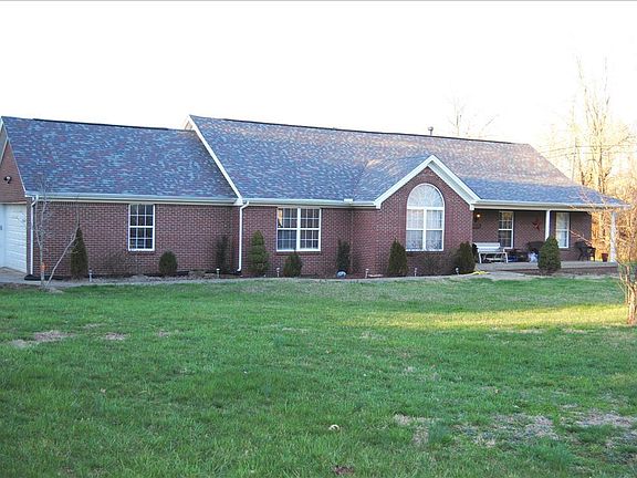 This spacious home features an open floor plan, with cathedral ceilings, laminate flooring, and lots of natural lighting, due to two sets of french doors on the back of the home, and large windows on the front. The living room has a wood burning fireplace, and enough space for two separate seating area's. The kitchen has stainless steel appliances that remain, a breakfast bar, a nice sized pantry, and a separate dining area. The master bedroom has a walk-in closet, and french doors that lead into the backyard. The master bath has a dual sink vanity, wood grain ceramic tile flooring, and a beautiful tile & stone walk-in shower with dual shower heads. The outside of the home has a large pole barn for all of your storage needs, as well as, another barn for storage or animals. There is a pond on the property that is shared with a neighbor, and plenty of space for a garden, or to sit and enjoy nature. Call now to schedule a private showing, to see all that this wonderful property has to offer!