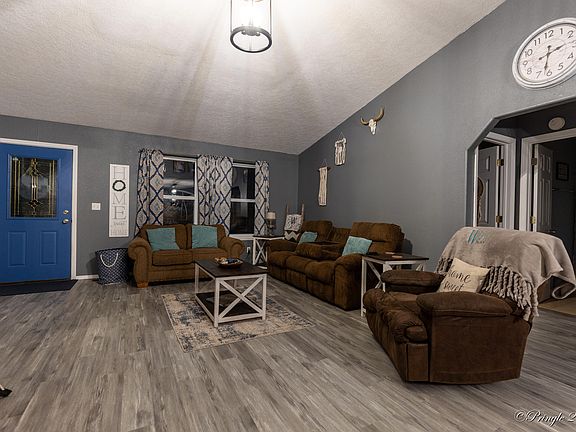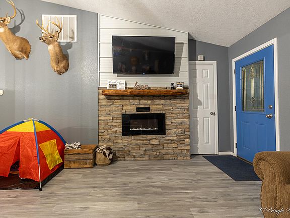 Check out this cozy 3 bedroom 2 bath home located just outside of city limits! This home features cultured stone fireplace with electric insert, vaulted ceilings, large vanities, walk-in master closet, large family room, and attached 2 car garage. Outside features 24' round above ground pool w/deck, large storage shed, rear deck, covered front patio, and perimeter fenced for your livestock!