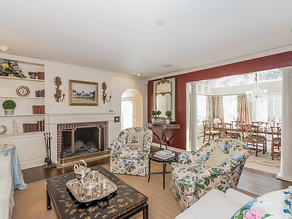 Privacy abounds at this sophisticated 4 bedroom, 3 bath home sited on 2 professionally landscaped acres. Gracious one-story living features elegant living room with fireplace, sun-filled dining room with vaulted ceiling, family room, eat-in country kitchen with adjacent pantry plus office. Large master suite with multiple closets, luxurious bath and siting area with French doors opening to a terrace. Level property with lush gardens surrounds gunite pool with spa.