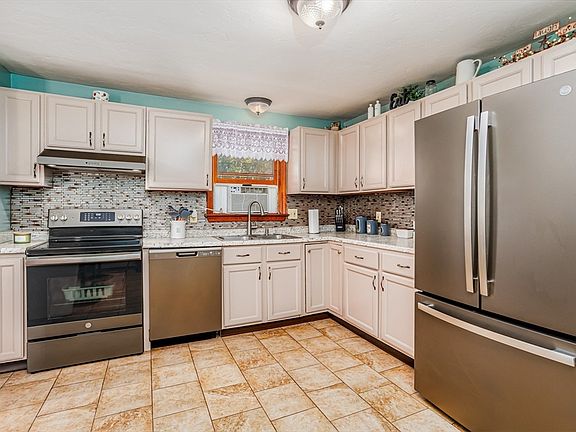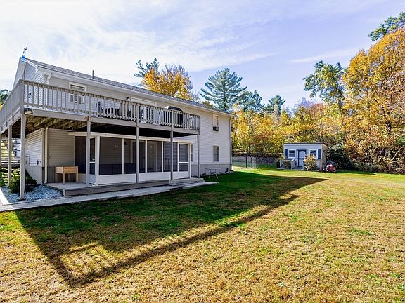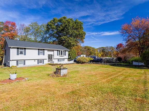 Beautiful 4 Bedroom Raised Ranch Split Level on on a lovely wooded lot located on 2.17 acres awaits you! Step into the open floor plan with a large & bright living room.Open kitchen that has full stainless steel appliances,high island bar, glass backsplash & tile flooring. Formal dining area with French doors to outside deck.Hardwood flooring! Open floor plan for entertaining & the holidays to come! 1st level has 3 bedrooms with a master suite & a full bathroom! Jacuzzi tub! The bottom level in this split ranch is ready for in-law potential.There is a custom bar, kitchen, full bath along with lots of additional living space & even a home office. Custom built-ins! New Septic installed in 2024! Have your morning coffee on the deck and enjoy the peace and sounds that nature has to offer. Huge backyard for many social gatherings! Close to major highway but away from it all in the quiet dead end st close to conservation land! 1st showing at Open House Saturday 10:30-1pm!