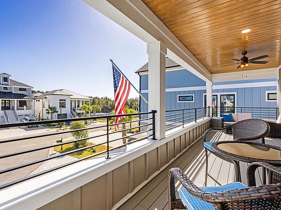 This pristine 4-bedroom, 3.5-bath custom home with a private saltwater pool is situated second row to the Intracoastal Waterway in the exclusive, gated community of Boardwalk on the Waterway. The grand entrance showcases a two-story staircase with board-and-batten details, setting a luxurious tone. Thoughtfully designed, the main level features the owner’s suite and a guest bedroom, while the second floor offers two more bedrooms, a spacious game room, and a covered porch with waterway views—ideal for a multigenerational lifestyle. The great room impresses with vaulted ceilings, a shiplap gas fireplace, and a home bar, creating the perfect space for entertaining. The gourmet kitchen is equipped with a natural gas cooktop, double wall ovens, quartz countertops & backsplash, and a walk-in pantry with custom shelving. The owner’s suite boasts a tray ceiling, custom walk-in closet, and a luxurious bathroom with a seamless glass shower. Outside, enjoy a private oasis with a luxury-saltwater pool and fenced yard overlooking a vast pond with lighted fountains. Outdoor features include a large screened porch adorned with stained wood ceilings, Trex decking, saltwater pool, and water views. Other features: Energy efficient Rinnai tankless hot water heater, utility sink in garage, attic storage space accessible from upstairs, two HVAC units, pool lighting, and irrigation system. Community amenities include a gazebo, private boat and RV storage, five day docks, boat ramp and waterfront boardwalk.