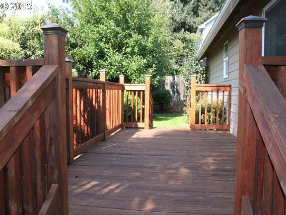 Nice 1-level home in great SE Salem location. Great curb appeal!Home features a covered front entry with brickwork arch. Large 80 X 100 lot is nicely landscaped W/Sprinkler system. Backyard is private and features a redwood deck for outdoor enjoyment. Separate Family room with vaulted ceiling and gas fireplace. Living / Dining combo. Kitchen has tile countertops and oak cabinets. Large laundry room.