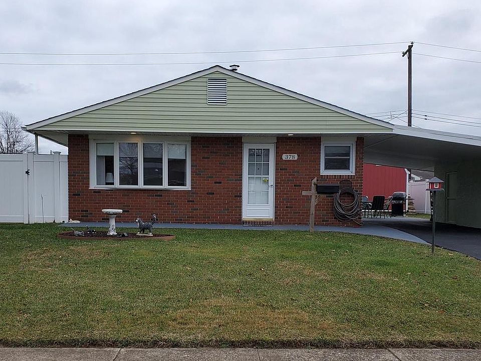 Everything about this home is lovely. Drive right into your private carport. The side entrance will put you into the gorgeous expanded eat in kitchen. Tons of cabinets and counters. Ceramic tile backsplash. Eye level oven and cooktop. Built-in microwave, dishwasher and refrigerator. Stainless steel sink is perfectly positioned to glance out the windows. The living room is large and cozy with a wood burning brick fireplace. A bow window emits lots of natural light into this room. 3 bedrooms with plenty of closet space. The full bath has nice ceramic tile with a stall shower. Hallway closet and linen closet. The side entrance leads you to a patio for great summertime entertaining. Large, private vinyl fenced backyard with large storage shed. The home also has an attic with pull down steps to a floored attic for tons of extra storage and an attic fan. Hardwood floors in living room and kitchen. Laminate in bedrooms. Laundry in kitchen includes washer and dryer. Newer above ground 330 gallon oil tank. New roof installed 12/7/2020. Carport roof 11/7/2016. Security system included. Cameras neg. Home warranty 1 year.