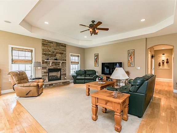 Welcome to this 4 Bed, 3.5 Bath former Parade Home which has all the details you would expect: Custom Cherry Cabinets, Granite Counters, beautiful Red Birch hardwood floor with custom Brazilian Cherry inlays and boarder. The Primary bedroom has tray ceilings, walk in closet, and the master spa like suite has a whirlpool tub, beautiful Travertine stone shower and floor. You'll find details like arched doorways, art nooks and more. Enjoy movie night in the LL with the Projection TV that stays, a wet bar with granite counters for entertaining, plenty of room for your pool table and lots of additional storage space. Relax in the 3-person Infrared Sauna that will stay for your enjoyment. The large 3-stall garage has Epoxy flooring and an additional work/garden storage room through the garage to the back yard. Sound system, central vac, irrigation system, screened in Cedar porch (with a sound system), and cobble stone patio are all waiting for you!