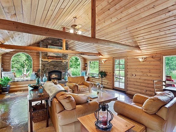 Tucked away in mature trees nestled up to the year round Rapid Lightning Creek is this immaculate one of a kind gated estate. Three parcels, 18.11 acres meticulously cared for w/ amazing landscaping, walking trails, & many nice sitting areas against the creek. Beautiful well maintained 5 bed/3 bath home w/ log accent walls, vaulted t&g ceilings, ceilings fans, & amazing natural stone floors. Spacious living room w/ a floor to ceiling rock fireplace surrounded by windows w/ seating. Gourmet kitchen w/ stainless steel appliances, 6 burner Wolf w/ a griddle & double oven, granite counters, large island, & a breakfast nook. Over the garage are 2 guest rooms w/ a pull down staircase accessing the bunk room w/ 5 beds & a play area.