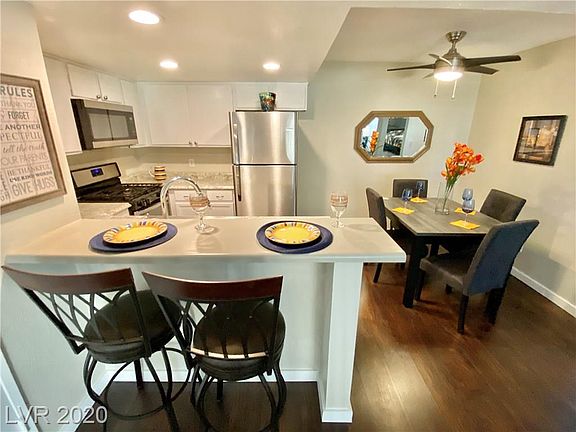 Trying to find ONE STORY, two bed, 1 car GARAGE, RV parking, gated community with four pools near the river? We have one! This Laughlin Bay condo is in immaculate condition. Laminate floors, redone kitchen with stainless appliances and clean, fresh paint and carpet. Home is in the best location in beautiful green community, home sits 10 yards from pool that creates a beautiful view from the covered patio. Take a walk as many do as the South side looks at and across the river and marina to the lights of the riverside mansions.A brand new professional inspection completed and available for review. Washer dryer also included and located inside.See pictures, be the first in; first to buy in the raging Laughlin housing market. .
