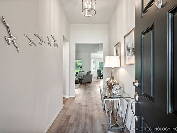 This nearly new home built in 2022 in the desirable Pine Valley subdivision does not disappoint! A true 4 bedroom home with a split floorplan is an excellent option. It has a delightful kitchen with a spacious bar and loads of cabinet storage ready to go, not to mention a roomy pantry and stainless steel appliances including the refrigerator. The front split bedroom could also serve well as a home office or second living area, so many options. A three car garage with extra space for whatever your heart desires doesn't hurt my feelings either. My very favorite feature though is the beautiful green foliage in the greenbelt behind the house. Fully fenced but allowing for a view, sitting on the patio of an evening you are likely to see deer roaming around the woods.