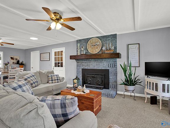 - Features: Ceiling Fan(s), Carpet, Fireplace