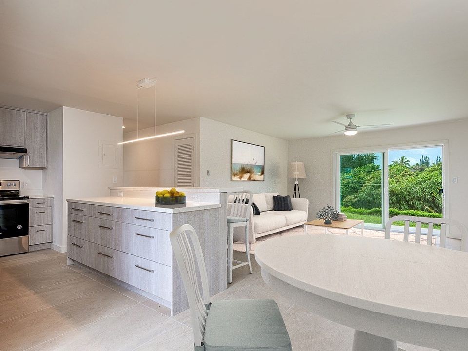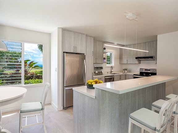Located in the heart of the north shore, this ground floor spacious Alii Kai I-1102 was remodeled this year. It remains untouched just awaiting you as the first occupants. Everything in the unit is new including what you can't see behind the walls. See below for complete list of upgrades. It is vacant and move-in ready. If your buyer is looking for a condo as a vacation rental or a permanent home, this is a must see! With a slice of the ocean & stunning mountain,waterfall and jungle views... you will never want to leave! Wake to the joyful sound of songbirds in the valley as the tradewinds create a perfect breeze through the newly replaced high quality windows.NEW:* Ceramic tile floors* Ceiling fans* Lighting* Drywall/paint* Windows* Electrical* Plumbing* Kitchen* Bathrooms* Appliances* Water heater* DoorsAlii Kai has low density compared to nearby complexes. It's unique design allows every unit to have a view. There is also a beautiful pool area and a trail to a small secluded beach. Princeville offers walking paths throughout the resort to access multiple beach paths, shopping, dining, banks, post office, library and Princeville Park. It is a 10 minute drive to the town of Hanalei with incredible miles of sandy beach and multiple world renowned surf spots. A short drive in the other direction will take you to Kalihiwai Bay and the Kilauea Lighthouse and Wildlife Sanctuary. This unit is being sold unfurnished. All furnishings in photographs are Virtual.