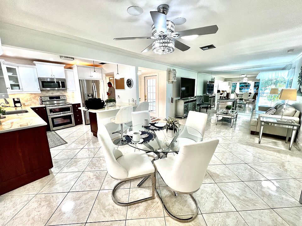 This 2 bedroom Villa has many updates and is in pristine condition. FIREPLACE, Tile and wood floors, top of the line Salt Free, Dual Tank DUALCON WATER FILTRATION SYSTEM for the whole house ($7K in value) with Lifetime Warranty. BRAND NEW Queen Dual ILE 360 Smart Bed, Queen FlexFit w/Attached remote ($4,500K value), solid wood cabinets and granite counter tops in the kitchen covered by a handmade epoxy, plus a new hot water heater. Great community with low HOA fees. Close to wonderful restaurants and fun shopping and minutes away from 5th Avenue. NO DAMAGE DURING IAN.