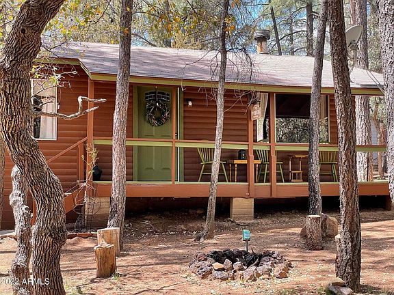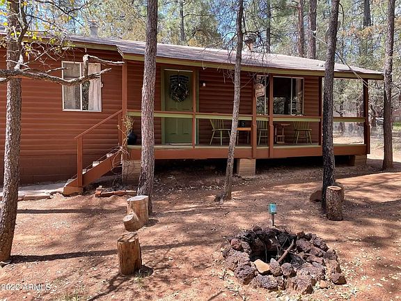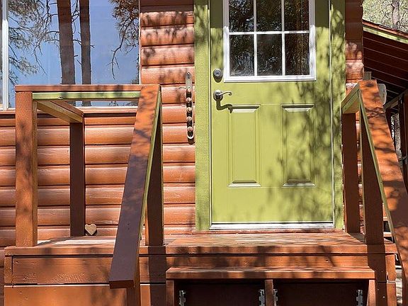 Charming cabin in the woods with tall pines and mature trees. Flex room can be a second bedroom. Recent updates include: Kitchen, bathrooms, flooring, exterior doors, window glass, paint and some trim. New septic system was just installed and the cabin has city water. Nice, mostly usable lot with a storage shed and a carport with small shop attached, both with concrete floors. NO HOA