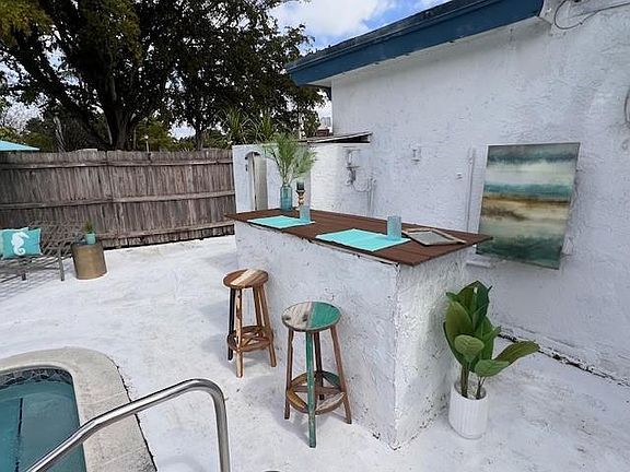 Additional property info in attachments This single family 2/1.5 pool home was made for entertaining so invite your friends; plenty of parking in your expansive circular drive. As you walk to the backyard you'll find a spacious 18x35 pool surrounded by a large patio, a wet bar for your relaxation needs, and even an outdoor shower! Once inside, cool off with the oversized HVAC (2019) and enjoy the home's surround sound wired into the walls (all included w/ large TV)