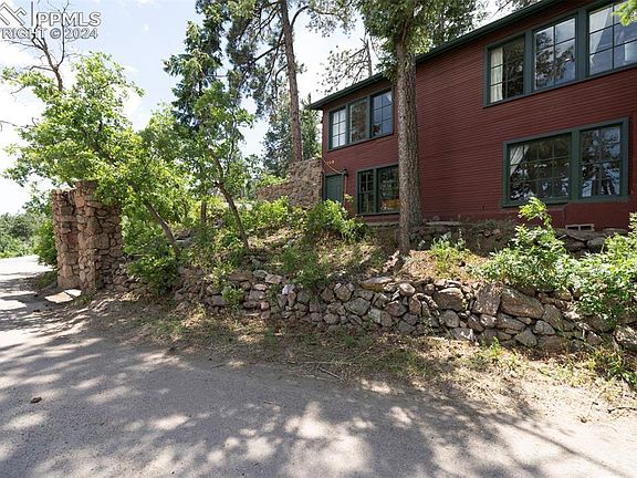 This one-of-a-kind home is located on Cheyenne Mountain in the Overlook Colony which was established by CC professors in 1911. With amazing views of the flat lands, this 1919 bungalow exudes charm. Situated on almost 1/2 acre just below the Will Rogers Shine of the Sun, this unique home offers wonderful outdoor entertaining spaces, original stone work, a fenced yard for dogs, a tree house, a green house structure, and a shed. With over 2200 square feet of living space with a very open feeling, the kitchen, dining room, living room and family room are all adjoining and can be utilized based on a persons desires. All the rooms on the main level are large with lots of windows to enjoy nature and the views. There are two bedrooms and a bath on the main level, both with access to the deck and one bedroom and bath in the basement. A new detached two-car garage, was completed in 2022, the roof was replaced in 2020 and the hot water heater in 2017. Water is provided by the Overlook Mutual Water company and the home is on septic. This is the perfect place to live and feel as though you have escaped to the mountains every day!