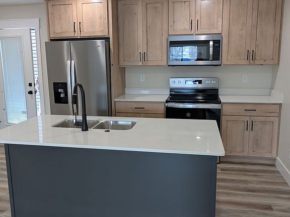 Pending Application Half Off First Month Rent New Construction Move-in ready! This townhouse has 4 bedrooms and 2 bathrooms. Main floor bedroom, and 3 bedrooms on the upper level. The home has custom kitchen cabinets and a large island with quarts counter tops and warm wood tone LVP flooring in the kitchen and Livingroom . Heated with and electric mini-split unit with air conditioning plus individual electric heaters in the bedrooms. You will love the large neighborhood park! $1,525 per month, $1,675 security Deposit OAC. There is a $150 per month Water, sewer, trash and lawn care fee. No smoking property .Service or support animal only.