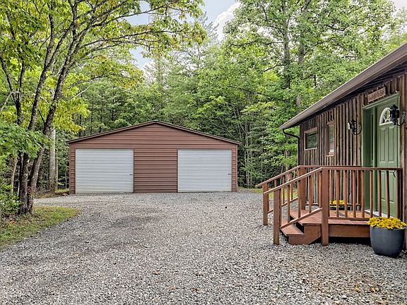 Privacy at its best - Brasstown Homestead sited on 15 unrestricted acres! Updated 2-bedroom, 2-bath Ranch floor plan with a detached metal 2-car garage/workshop, cross-fenced pastures, metal barn, plus a rustic wood barn. Great design with an open kitchen featuring a working island with bar seating, newer stainless steel appliances, ample cabinetry for storage, and picture windows for beautiful views. The family room showcases a floor-to-ceiling rock hearth with a wood-burning stove, complemented by a wood cathedral ceiling and a charming window nook to enjoy a good book. The Primary Suite features an updated bath with a dual granite vanity, large whirlpool tub, convenient laundry chute, and a wood-burning stove. Spacious secondary bedroom with a guest bath featuring a shower and pedestal sink. Access the patio through the all-season sunroom, which offers views of the pasture, barn and surrounding woods. Many craftsman touches throughout including a drop-zone at the front door with custom built-ins for storage. A full unfinished basement with exterior access, ideal for hobbies or future expansion. Tucked away beyond a gated driveway, this property offers endless opportunities for embracing solitude in the beautiful NC mountains.