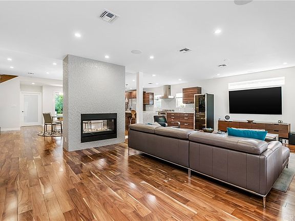 This stunning South of the Blvd designer home is a modern entertainer's paradise. This masterpiece has been completely remodeled to the studs with unsurpassed attention to detail. Built meticulously with an open floor plan, you'll adore coming home to your own paradise featuring sophisticated wood floors, custom finishes & an unbeatable abundance of natural light. The main entrance welcomes you into a spacious living room with a dual sided romantic fireplace. As you step into the gourmet kitchen you'll be surrounded by contemporary elegance where you'll discover all stainless appliances, stunning oversized center island with exquisite quartz countertops. From the kitchen, stroll through double French doors into an outdoor entertainer's paradise which is fully equipped to host any gathering. Sports/movies have never looked so good on the state of the art 100" projector & 2 outdoor TVs. Enjoy the patio all year-round with top-of-the-line outdoor curtains which fully enclose the deck area to create that perfect indoor/outdoor living space, including an outdoor chef's kitchen, large spa, gas fireplace, Zen gardens & a pool, this exterior space is a dream & a true extension of the house. Details include 2 master suites, electric entry gate, custom garage & smart home elements powered by the high-end Control4 system. Located on a quiet cul-de-sac tucked away off of Ventura Blvd., this Studio City home is moments from everything you could want & more, this home is a must see!