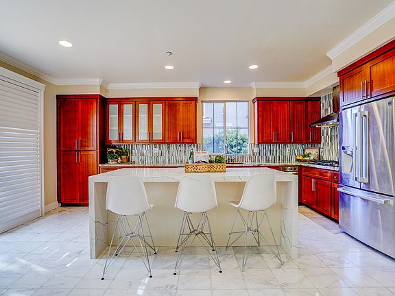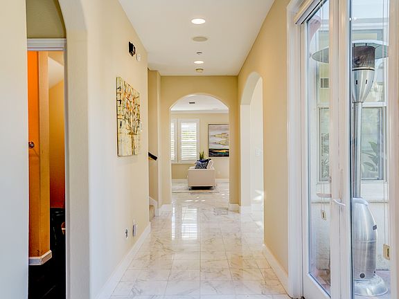 Close to the NEW FaceBook campus - Stunning NORTH-EAST facing Home in highly sought after, picturesque, rarely available Riverwalk! **AWARD-WINNING Parkmont Elementary**!! Largest floorplan with over $500k in HIGH-END upgrades! ONE bedroom & ONE FULL BATH street level! RESORT like BACK & FRONT landscaping!! Close to award-winning **Parkmont** elem, biking and hiking trails around Quarry Lakes, views of the hills and trails. **TOO MANY UPGRADES TO LIST** Designer touches from Bedrosians - glass tile mosaics in kitchen, baths, **CUSTOM kitchen cabinetry, **GRANITE**Calacatta porcelain slabs w/ miter edges, Travertine floors, Italian Carrera MARBLE flooring, Tigerwood hardwood flooring *NEW* Waterfall Island and **NEW contemporary backsplash, **NEW paint, PLANTATION SHUTTERS*. A/C, WATER SOFTENER**Huge back, side yards feature water fountain, pond with cascading WATERFALL, full size **OUTDOOR KITCHEN, gazebo! **HUGE PALM TREES** BONUS room can be *THIRD CAR GARAGE!! CHILDRENS PARK**!!