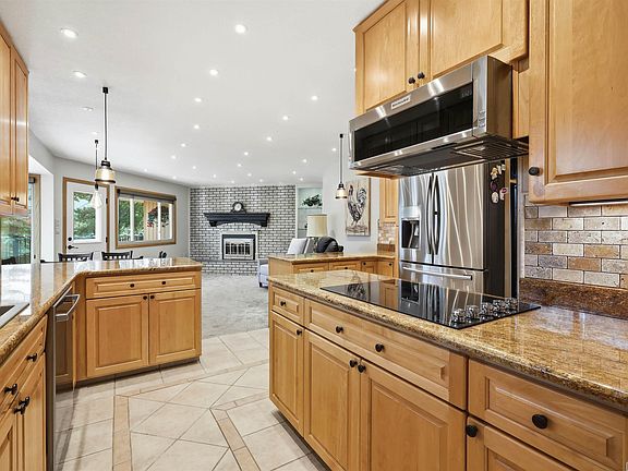 Experience a one-of-a-kind home crafted for comfort and serenity, perfectly situated along the tranquil Garden Creek. The main floor features a beautifully updated kitchen with abundant cabinetry, granite countertops, a stylish tiled backsplash, stainless steel appliances, and under-cabinet lighting. A cozy sitting area off the kitchen, complete with a brick gas fireplace, offers the perfect spot to relax while taking in breathtaking creek views. The second main floor family room also boasts a gas fireplace and stunning vistas of the backyard and creek, while the formal dining room, accented with elegant crown molding, provides an ideal setting for entertaining. The primary suite is a true retreat, featuring granite surfaces, dual sinks, a sunken shower with granite bench, and a spacious walk-in closet. A guest bedroom or main floor office and a guest bath with a walk-in jacuzzi tub complete the main level. The lower walk-out level offers generous space for family and guests, including two large bedrooms, a full bath with a soaker tub and walk-in shower, and a family room with a gas fireplace and full kitchen. A convenient shop room below the garage adds versatile functionality. Outside, enjoy a backyard oasis where Garden Creek winds through, complete with a charming bridge and park-like surroundings. Entertain or unwind on the expansive 1,300 sq. ft. Trex deck with gazebo, or relax on the flagstone patio just off the walk-out lower level. This home effortlessly combines sophisticated living with natural beauty, offering an unmatched lifestyle.