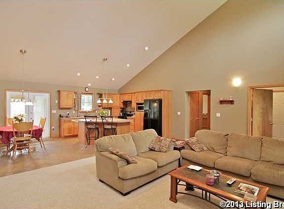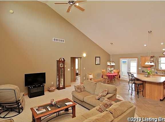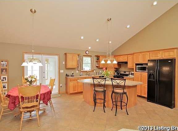 YOUR GONNA LOVE IT!! Gorgeous custom brick split floor plan ranch home on 1.473+/- acres. The center of the home offers an Open floor plan for the Great room, kitchen w/ separate dining area, large kit. island w/ breakfast bar, appliances, & vaulted ceiling. There are two large bedrooms and full bathroom to the left of the home. On the right side is the Master bedroom that offers a large walk in closet. Master bath has double sink vanity, whirpool tub and double head marble shower. There is also a large mudroom and half bath. The Back of home has Large enclosed sunroom and outdoor covered patio. Fenced in back yard. Detached 30' x 40' metal pole building provides a great, heated, workshop. It also features cabinetry that could serve as a kitchenette or great place for entertaining; full bath and loft area that has drywall just phenomenal. Full unfinished basement is clear span and has large storm shelter that could be potential storage vault. Basement has walkout area that is covered a\n\nInformation Deemed Reliable But Not Guaranteed. Information provided by the Southern Indiana REALTORS® Association, Inc. © 2010 SIRA Multiple Listing Service. All rights reserved. Brokered And Advertised By: RE/MAX Associates of Louisville Listing Agent: Greg Taylor