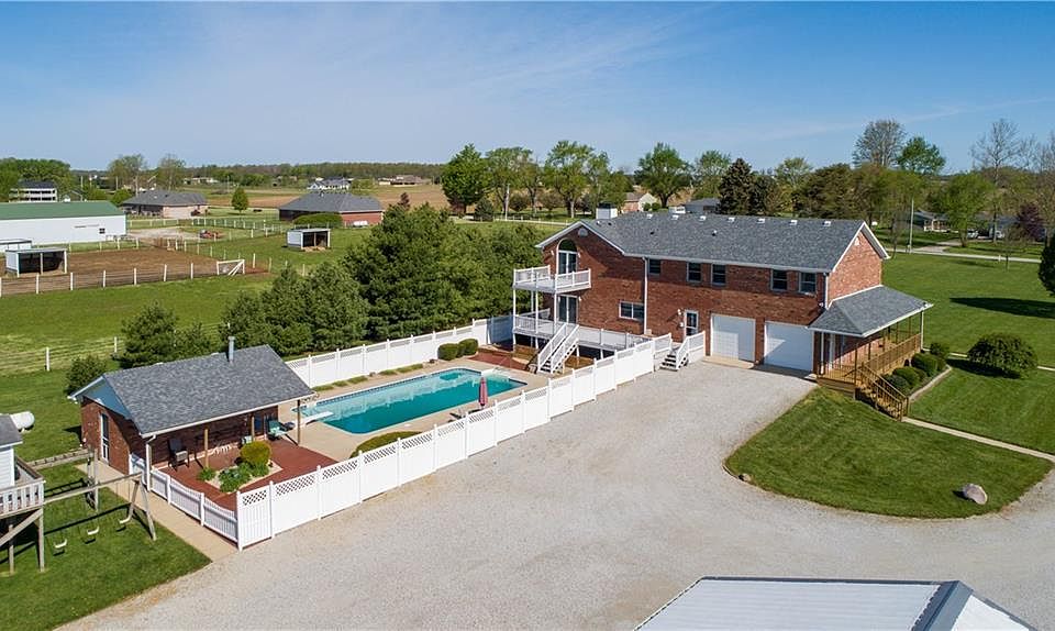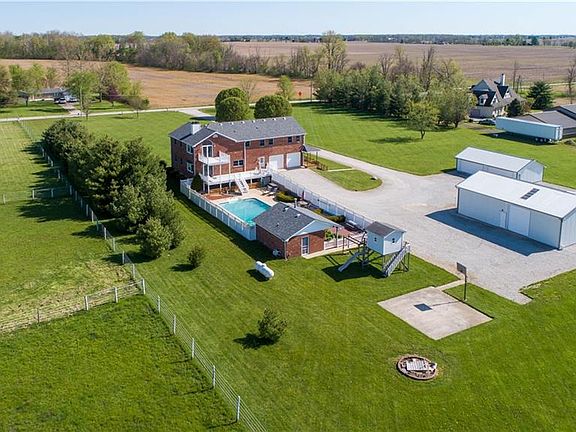Absolutely amazing home! 5 Bedrooms,4 baths plus 1/2 bath in pool house.2 Double fireplaces. Large kitchen with appliances included. Huge master suite with sitting area, master bath with Jacuzzi tub, heat lamps, separate shower & walk out composite deck. Full finished basement. Heated attached garage, 4 car detached garage with concrete floor, 48 X 30 Pole barn with 12 ft doors. One bay is heated & insulated. ln ground pool, pool house, play set & attached clubhouse. All this plus 5 acres to enjoy your own paradise. See attached addendum for more details or call list agent. Too many amentities to include.