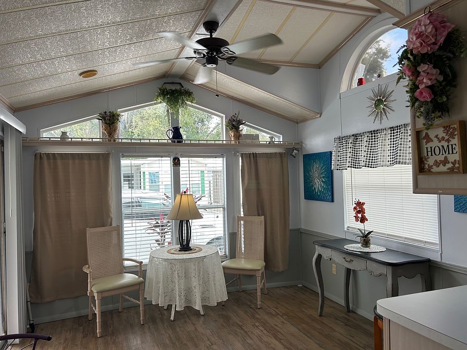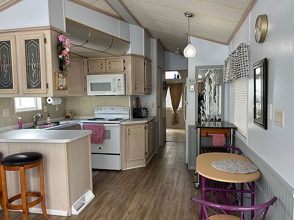ENJOY THE AMENITIES OF THREE RESORTS! Spacious one bedroom one 1/2 bath with laminate flooring and additional living area for guests. Living room has lots of windows and vaulted ceiling for a bright open area. Kitchen is open to living and dinette area. Bedroom has laminate flooring, ceiling fan, built-in dresser, cabinets, and his & hers closet. En suite bath has a raised toilet, walk-in shower enclosure with safety rails, vanity with overhead mirrored medicine cabinet, and chair rail paneling. Additional living/den area is also your entryway into the home with a laundry room and half bath. Exterior at home is a on corner lot with a carport and flower beds. Please contact listing agent only for showings and more information. Southern Charm, Settlers Rest, and Sweet Water Resorts are land lease 55+ communities. Amenities include heated pools, clubhouses with many activities, dog parks, and so much more.