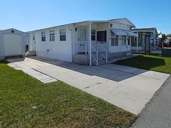 Charming Florida-Style 1 Bedroom, 1 Bathroom Home Step into this delightful one-bedroom, one-bathroom home that perfectly captures that classic Florida charm, complete with awnings and a cozy covered front porch the ideal spot to sip your morning coffee, visit with neighbors, or simply relax. Inside, you ll enjoy central heating and air conditioning for year-round comfort. The spacious addition expands your living area, offering plenty of room for guests and includes a convenient utility room with a full-size washer and dryer. The open floor plan connects the fully furnished living room, dining area, and kitchen, creating a bright and inviting space. The kitchen features generous counter space, ample cabinetry, and a propane stove ready for all your cooking needs. The bathroom offers dual access from both the hallway and the bedroom and includes a walk-in shower for added convenience. The bedroom currently accommodates a full-size bed with room to personalize. Located in Southern Charm, a beautiful and active 55+ community, this home blends comfort, functionality, and that unmistakable Florida lifestyle. Call now at this price it will not last.