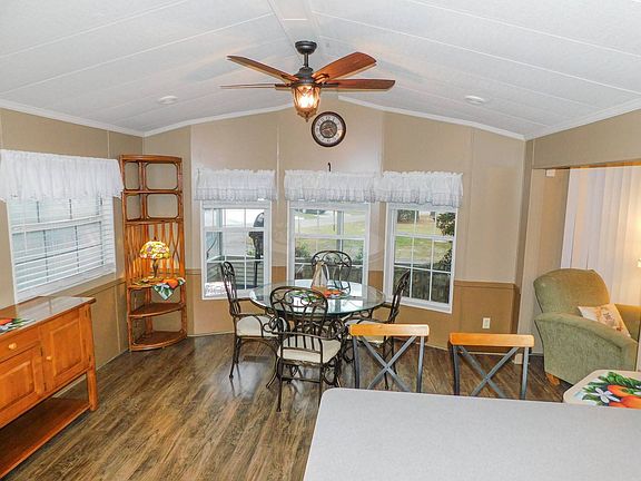** Exclusive Listing! Age 55+ Land Lease Community with $509 monthly lot rent. Contact listing agent below for ALL showings and offers.** One of a kind stunning showplace! Introduce yourself to your Florida dream home, this mostly updated and smartly expanded 1995 Park Model with two bedrooms and two bathrooms. Nicely priced at $45,300, and originally measuring 14x36, the home now totals approximately 1090 square feet of enjoyable living space, including the additions of the bonus/living room, guest bedroom, and guest bathroom/laundry room. With all the added space, your visitors will think you live in a full size double wide home! It is in very good condition, immediately available, and will be sold fully furnished, so your move will be quick, easy, and stress free. Outside, the community recreation area is directly across the street! Your new home is ready and waiting for you on a perimeter lot in Southern Charm RV Resort of Zephyrhills, a very friendly, active, and well maintained community. The monthly lot rent of $509 includes trash removal, lawn care, and use of park amenities. You must see this one for yourself! Call today and make your dreams come true! This is a park model home on leased land. The monthly lot rent is $509. The land/lot is not included with the sale.