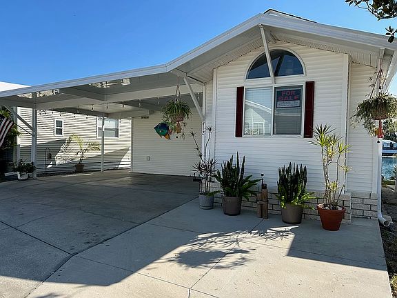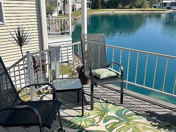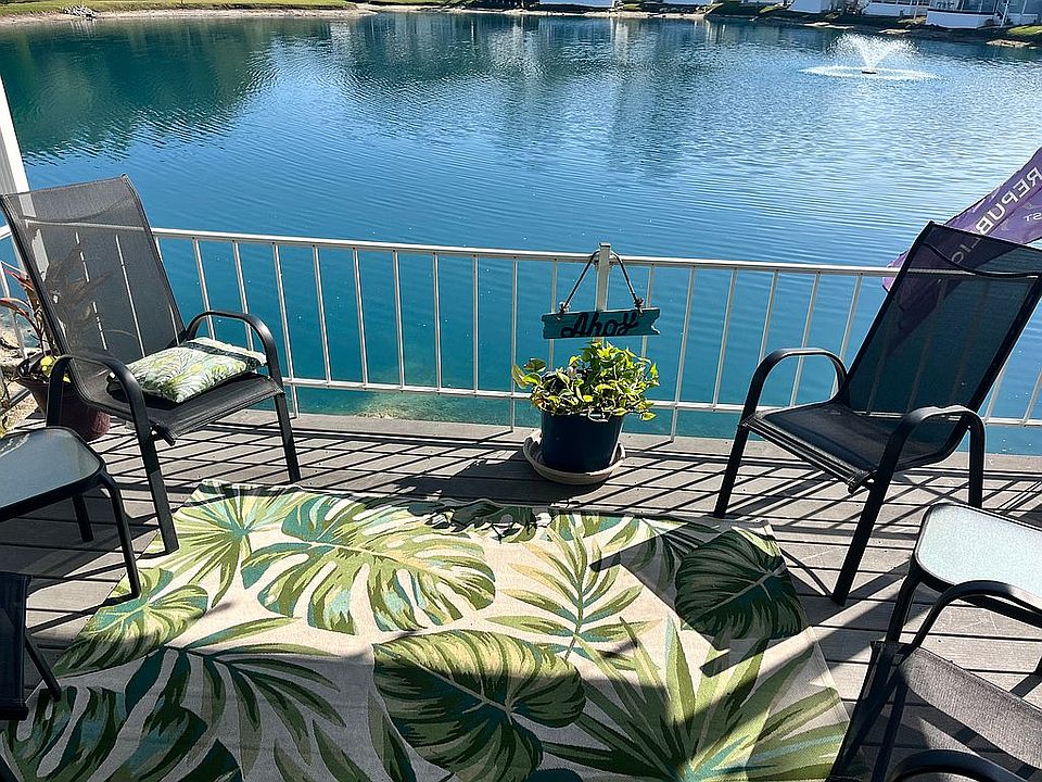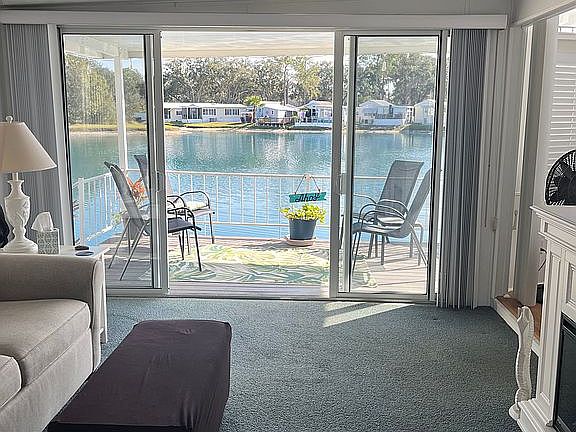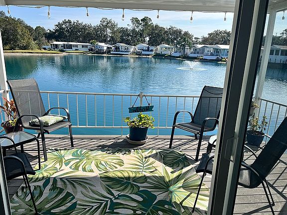 Reduced. Beautiful move in ready, fully furnished home! Queen size master bed, 1 bath, plus a queen size sleeper sofa with convertible private 2nd bedroom. Fresh paint, new hardware, lighting, fans, blinds, AC motor and refrigerator. Updated bathroom with new walk In shower. This home is ready for occupancy. The master bedroom has built in storage. Home equipped with indoor washer and dryer attached utility shed for extra storage Large covered 2 car carport, covered back deck on the water and new side patio for grilling. This home is situated on the pond with water views in the Southern Charm 55+ RV resort. It’s a Fun Golf cart community connected to two other sun properties, Settlers Rest and Sweet Water where you can join In all the activities and use the amenities at all three parks. Home is furnished and move - in ready. Lot rent $700 per month which includes lawn maintenance and all the amenities.