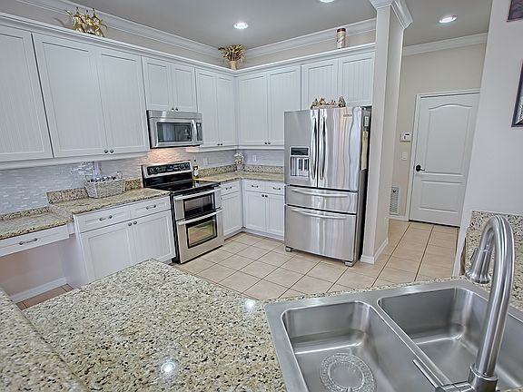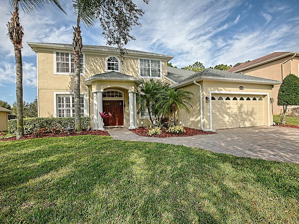 Come take a look at this beautiful GOLF FRONT home located in Beacon Ridge at Legends. This home features 5 large bedrooms and 3 full baths. The front foyer welcomes you with a large formal dining room to the right and the formal living room to the left. The great room offers volume ceilings and opens to the kitchen and breakfast nook. Perfect for entertaining family and friends! BRAND NEW Vinyl flooring and crown molding throughout. The kitchen features sleek STAINLESS STEEL appliances, GRANITE counter tops with double sink, designer back splash and plenty of cabinet space. A convenient guest bedroom and full bathroom are located downstairs. The 4 remaining bedrooms are located on the second floor. Large master bedroom and master bath with dual vanities, large garden tub, separate shower and water closet. Relax on your fully screened-in Lanai overlooking the 12th Fairway of the Legends Golf Course. Additional features of this home include windows and plantation shutters, BRAND NEW A/C unit on the second floor. Legends Golf and Country Club is a guard-gated community that offers many different amenities, including Tennis courts, Basketball courts, a community pool, Gym, Park, clubhouse, Home Internet Service, Home Phone and Cable included. On site restaurant and one of Floridaâs finest golf courses. Come and see what this lovely home has to offer!