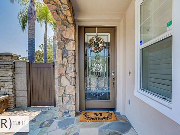 Entrance to the home is located on the side to offer extra privacy. The entirety of the home is laced with beautiful intricate crown molding. Wood flooring is present throughout the entire home with carpet for the bedrooms and laminate wood in the loft. The kitchen has granite countertops and is an open concept with high ceilings that pairs perfectly with the adjacent family room. Family room has a custom built-in entertainment system. The home boasts natural lighting throughout the entire house that creates a lovely inviting feeling.