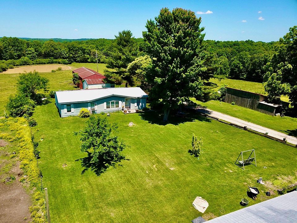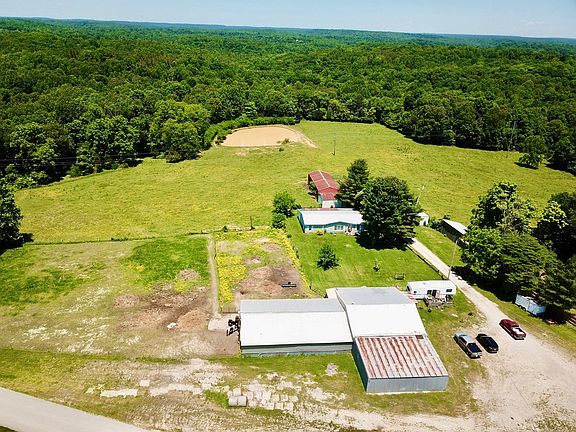Wonderful Southern Indiana Country home for sale. Home has 3 bedrooms and 2 bath. Also has a covered rear porch. Property is fenced and currently have cattle and horses. Two barns are for the livestock and stables for the horses. There are two ponds for the livestock. The north half of the property is all wooded and borders the Hoosier National Forest. Map pictures with Blue shaded areas are public hunting which gives owner access to additioanl 120 acres +/-. Home is minutes from Patoka Lake for all your summer boating fun. Lake is also great for fishing. The county has 1000s of State and Federal public access land for hunting and recreational activities.