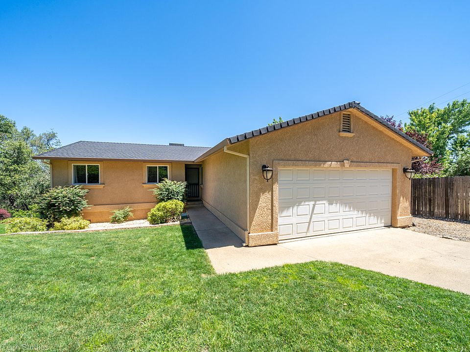 Beautiful well maintained home that is close to shopping and schools. Stucco sided, hardwood floors, tiled bathrooms, granite counters, stainless steel appliances, all on a gated private and secluded flag lot. Automatic sprinklers in the front, side and back yards with sprinklers in the greenbelt for added fire safety. Lastly this home has a huge tiered composite deck overlooking the green belt. Ideal for entertaining. Tons of storage in the huge subfloor. Be sure to check it out.