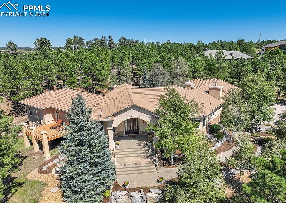 One of a Kind Find in High Forest Ranch!A Gated Private Community! Beautiful Stucco & Stone Main Level Living Rancher on a Walk-Out! Located on 2.89 Acres! Fully Landscaped with Mature Pine Trees, Lawn,& a Water Feature with a Pond! Quiet Dead End Cul-De-Sac with very little traffic! Great Master Suite with a Fireplace, Sitting Area, Private Deck,& Walk Out to the Patio!Large Master Bath including a Steam Shower,Jetted Tub, & Large Walk-In Closet. Gourmet Kitchen with Upgraded Newer Appliances,Beautiful Wood Cabinets, Granite Countertops, Extra Prep Sink, Large Walk-In Pantry, Bar Counter & Island.Breakfast Nook or 2nd Dining Area. Formal Separate Dining Room or additional Living area off the Kitchen. Large Open Formal Living Room Plus a Large Family Room with a Fireplace! Built-Ins & a Walk Out to the Patio Area. Each of the Bedrooms have Walk-In Closets & access to a bathroom. Large Laundry/Mudroom off the Main Level Garage with lots of Countertop Space, Built-Ins, Large Sink and nice sunlight. Theater Room including all theater chairs, equipment, screen, sound system, audio & video. Oversized 3 Car Garage with LOTS of Storage, a Shop Area & Built-In Cabinets plus a lock off storage area.New Carpet and Paint.All Patio Furniture and New Hot Tub/Spa is included!