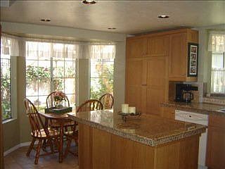 Georgeouslyupgraded 3 bed/2.5 bath townhome in The Crest of Calavera Hills. Very Private, interior location with greenbelt around. Large, private patio yard. Kitchen was completely remodeled in 2006 with new cabinets, granite counter tops, recessed lighting, tiled flooring, neutral paint. Cabinets have custom organizers and a mobile center island - perfect for entertaining! The kitchen also has two bay windows, breakfast nook and ample storage. Also has new dual pane vinyl sliding doors out to the patio.