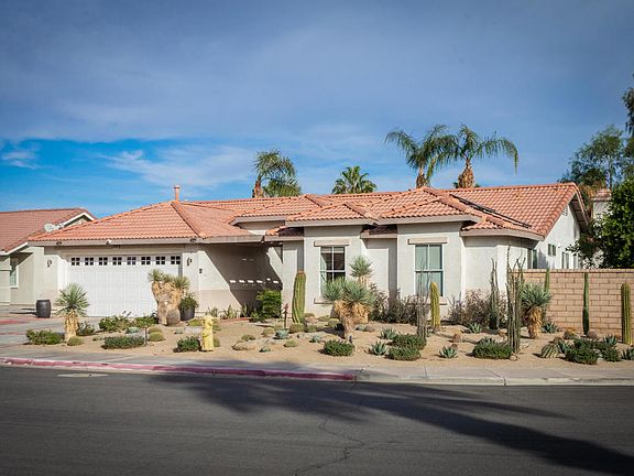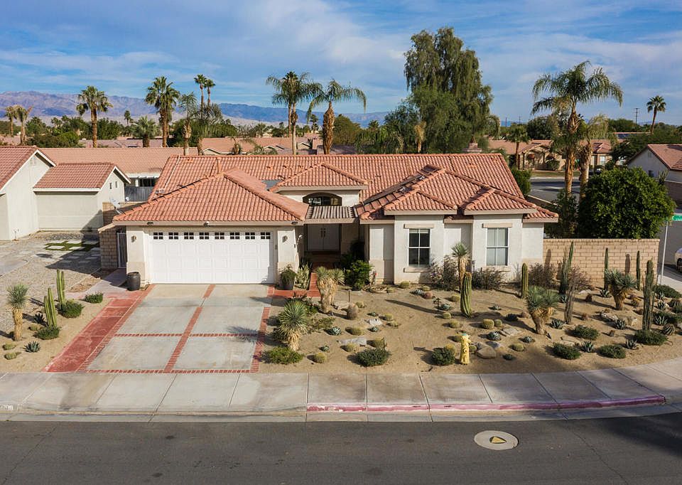 MOTIVATED SELLER! PRICE REDUCED! Welcome to 37820 Colebridge St. This 4 bedroom 2 bathroom single family residence, is located in the highly desirable city of Palm Desert. Showing real pride in ownership, this corner lot property would be excellent as a primary residence or seasonal retreat! It's located near great schools, shopping and golf courses. Offering an abundance of natural light throughout the home, and a generous sized kitchen, the floor plan sets three bedrooms and guest bath on one side of the house, with the primary bedroom, with attached bath and walk-in closet, on the other. The backyard is excellent for entertaining or enjoying a relaxing evening outside, and has enough room for the addition of a pool. There was a new water heater installed this year, and the refrigerator and dishwasher are under 3 years old. Call listing office for an appointment to see this wonderful property.This home is being sold with a transferable solar lease.