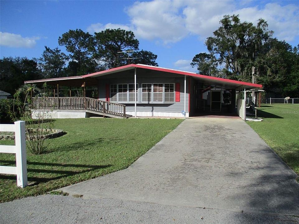 Welcome Home! This wonderful double wide offers country living in beautiful Zephyrhills. Situated on almost a ½ acre of land, there is plenty of room for your family and animals. Don’t forget to bring your toys! Property is fully fenced and has RV hookup’s. There is a large 23x15 covered deck attached to the house with a ramp. Adjacent to the house is a large shed with power. Inside are 2 bedrooms and 2 full baths, ample storage and newer laminate flooring. Fully enclosed lanai is perfect for relaxing and entertaining.