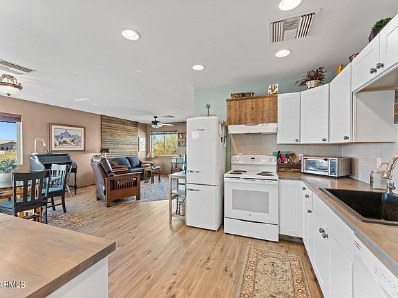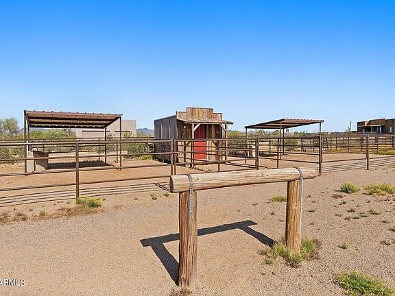 BIG PRICE ADJUSTMENT right here! It is never too late to get a jump on your next season's get-a-way! You will love this charming 2BD 2BA thoughtfully planned out horse property which offers you the very best of country living. This 2.48 ac property boasts a complete horse setup with covered stalls, tack room, and secure pipe no-climb fencing ensuring safety & comfort for equine campanions. This home exudes warmth & comfort, meticulously crafted for ease of living. From the cozy bedrooms to the well appointed kitchen, every detail has been thoughtfully considered to maximize the space given. Outside, the low maintenance desert landscape adds to the properties allure, allowing you to spend more time enjoying warm AZ winters. You will not be disappointed in this desert dream There s a 2 car detached garage with plenty of room for a workshop as well as your vehicles. This property has so many charming features form the barn wood exterior front entry to whimsical tack room. Corner lot, amazing mountain views, riding forever!