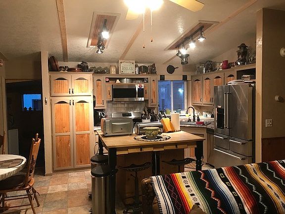 Some describe this property as "Country with a touch of Rustic Charm", my favorite description is "De-Light-Ful". You'll agree in a glance that the owners have done an amazing job creating a Classic Idaho Home. This mfg. home starts out as a gem with standard sheetrock/texture and paint, fully remodeled bathrooms (with high rise toilets), kitchen, floors, appliances (top of the line), upgraded lighting and formal dining room and a true canner's pantry. It's heated by both an efficient propane forced air furnace as well as very nice wood burning stove. In the summertime you'll enjoy an easy and efficient roof mounted evaporative cooler. The south facing lot is a nice feature and it's narrow width and long depth make it nice and private with a lot of room for pasture/garden/parking. There is also a "mother-in-law/caregiver" trailer setup with a special use permit that will be moved unless the buyer can apply for and be granted the same use. Purchase price including the care-giver home is an additional $15,000. If the buyer does not want the trailer, it will be moved before closing.