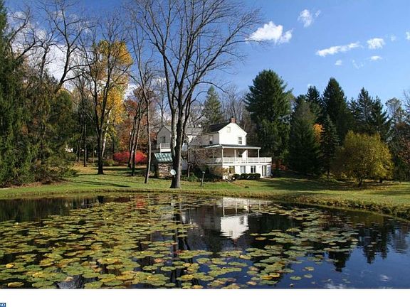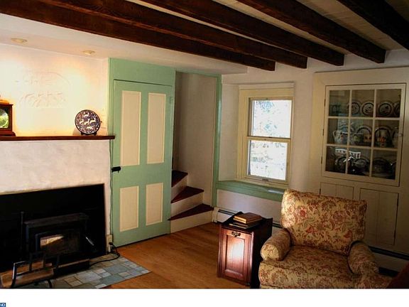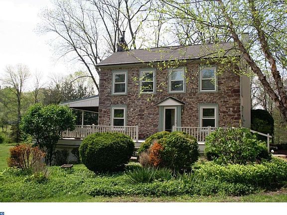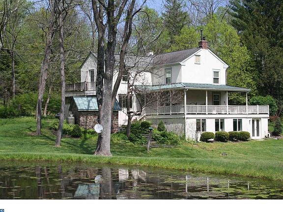 There are times we find an old house that looks comfortably lived in, well taken care of, and beautiful to behold. Tucked onto a quiet country road, this stone house greets the visitor with a white picket railing surrounding its front porch. Landscaping and stonework, including big granite steps, enhance the period look of the house. The porch keeps on going, wrapping around the side and becomes a covered porch overlooking the spring-fed pond. This farmhouse shares its period details with curved plaster window openings, built-ins, exposed beams, wide-plank butternut flooring. New improvements include copper gutters, Pella tilt windows, plaster details worked into the walls; a master bath was installed to make this appealing for a weekend or full-time residence. The country kitchen walks out to the covered porch, and the Garland stove should suit any aspiring chef. The second bedroom with its beadboard ceiling and built-in bookshelf opens to a dedicated deck and staircase. A walk-out lower level serves as a family room, for a vintage fireplace with shutters invites you to sit a while. A square stone archway leads into the office with French doors and a row of windows bringing in a cheerful view of the pond and lighting up the room. A full bath completes this level. This country setting plays host to over 76 species of birds, identified by the current owners. All this and more, 90 minutes from New York and Philadelphia. Sellers are offering a one-year Home Warranty.