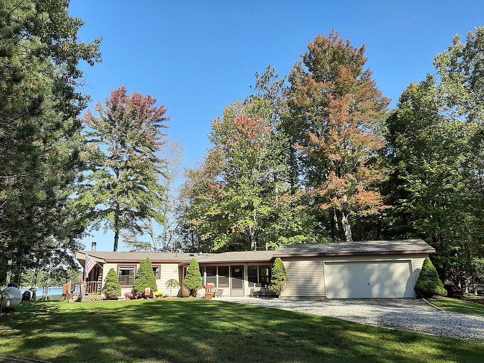 You CAN have it all! Lakefront home on a non-public lake with electric motors only. Very well cared for 3 bedroom, two bath home that has seen many upgrades. Great fishing along with two additional lots across the road that backs up to state land. There is a large 3 season room and an attached 28x24 garage. The home comes mostly furnished so you can start living comfortably right from the start. There are several accessories that could be for sale to get you started out right! There is a great 28x16 shed with full electric that sits on the two lots that backs up to the state land. All of this for one great price of under $200,000.