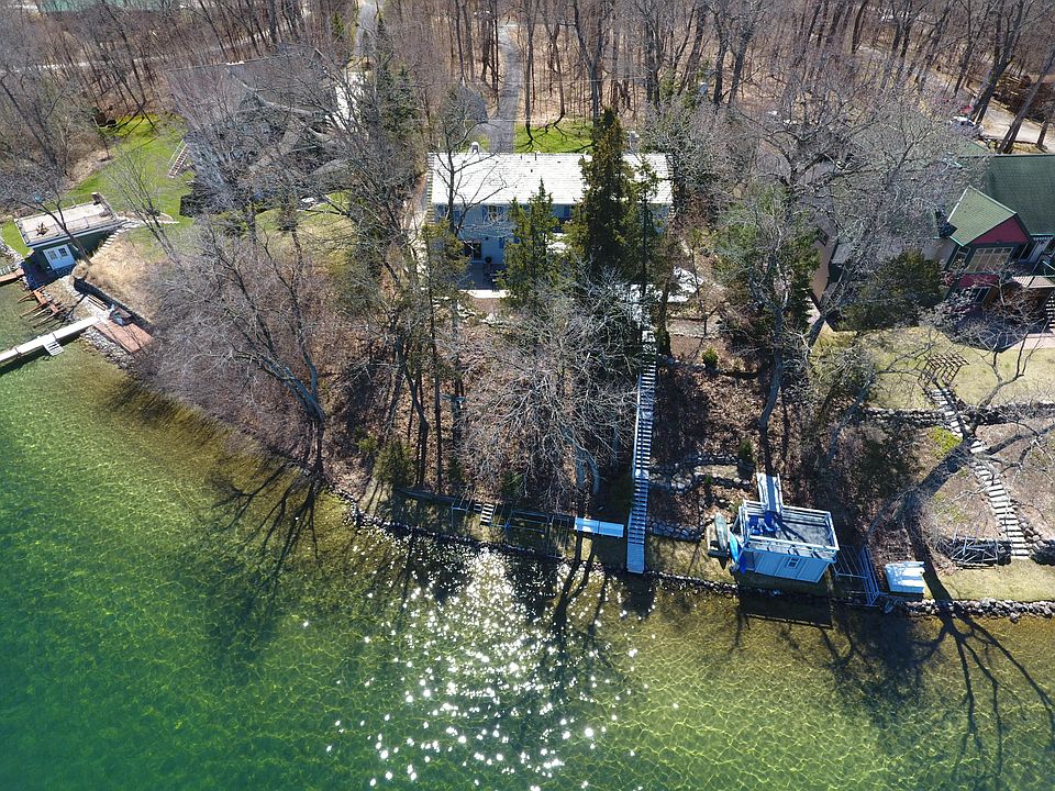 Amazing property on the south shoreline of Silver Lake offers incredible lake views and large lot with mature trees, rock shoreline, boathouse, and extra detached 2 car garage. Lovely cape cod style home features an open concept kitchen, family, and dining area. Kitchen has granite counters, breakfast bar, tile backsplash, double ovens, and walk in pantry. Dinette has a vaulted wood ceiling with sliding glass doors on each side to access the patio & deck. Spacious great room has HWFs, crown molding, & bay windows. The main floor office can also be a 4th bedroom with a walk-in closet, stunning lake views, and a full main floor bath. Upper level has a large loft, great alternate office location! Perfect crystal clear frontage & boathouse for storage w/rooftop deck!