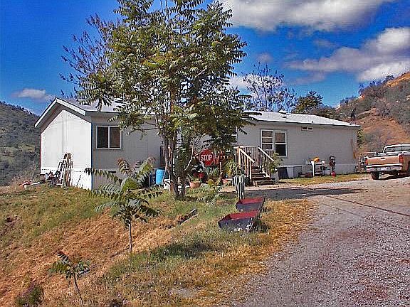 SALE PENDING ! Motivated Seller ! Here's a very nicely designed, Financeable 2004 manufactured home with a great floor plan. It's located in the southern portion of Squaw Valley on an elevated site on a hillside 5 acres that has a sweeping view of the surrounding valley. This property can go FHA or VA. The floor plan is very open with cathedral ceilings. The kitchen is quite large with an island breakfast bar, glass door pantry, and neat stain glass window over the kitchen sink. There is a large dining area and a huge living room area with another stain glass accent window. The isolated master has a large walk-in closet and the master bath has a separate shower and neat deep soaking tub. This is a hillside parcel so there isn't a lot of useable land. The pad area is quite large and there is one nice bench that could be leveled for a shop or barn site. The view is exceptionally nice. How about the negatives? Clearview Lane is paved but is pretty rough in places. The well is a bit on the low side but there is a 2,500 gallon storage system. The home is generally in very good shape but the carpets probably need to be replaced and it could use some touchup here and there. The land is fairly rugged. It's a pretty parcel but not very useable. Plenty of room for basics like a garden and such but not a spot for lots of outbuildings. This would be a nice property for someone looking for a quiet rural lifestyle but not wanting to do a lot with the land other than having plenty of privacy and insulation from the neighbors. The price is certainly right and it can go FHA or VA.