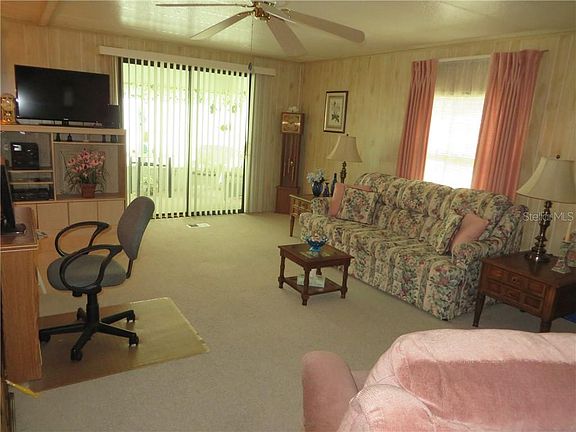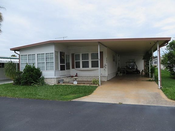 This home is situated in Spanish Trails Village a gated 55+ community. This nice 2-bedroom, 2-bath double-wide mobile home is cozy and comes furnished and ready to move into. As you enter the home you have your kitchen and breakfast nook area which flows to your spacious living room. You also have a dining room/area with built-in hutch that flows to the living room. Off the living room are sliders that go into your Florida room to relax and read your favorite book or to enjoy your favorite beverage when the weather permits. The master bedroom has an en-suite bathroom with shower and walk-in closet. The guest bathroom is close to the 2nd bedroom. On the outside you have a two-car carport and a utility/laundry room with storage space. You are minutes away from pharmacies, hospital, movie theater, home improvement stores, restaurants and grocery stores. You are allowed two pets here with some restrictions. Enjoy the clubhouse with activities and pool and social events. No lot rent here. Low HOA fee of $80.00 a month which includes trash pickup. This would make a great winter retreat from the cold North or year-round residence. Call for your tour today.