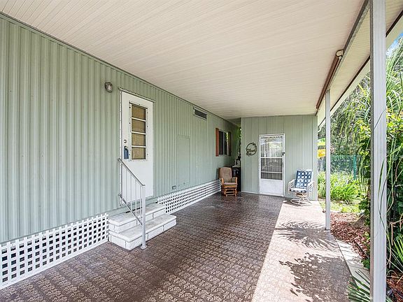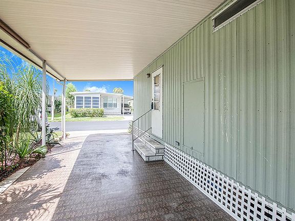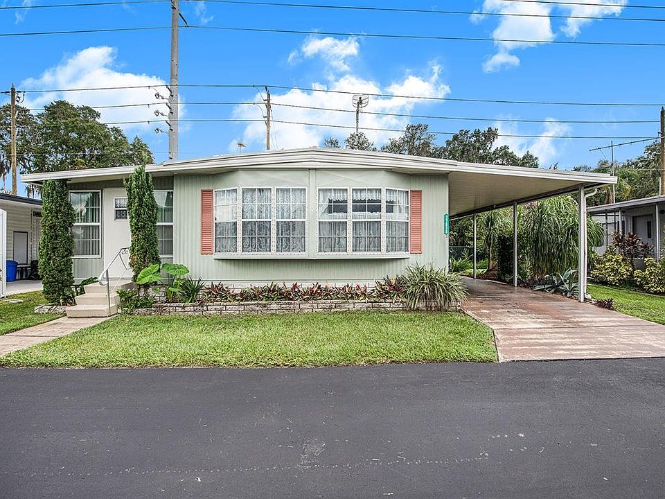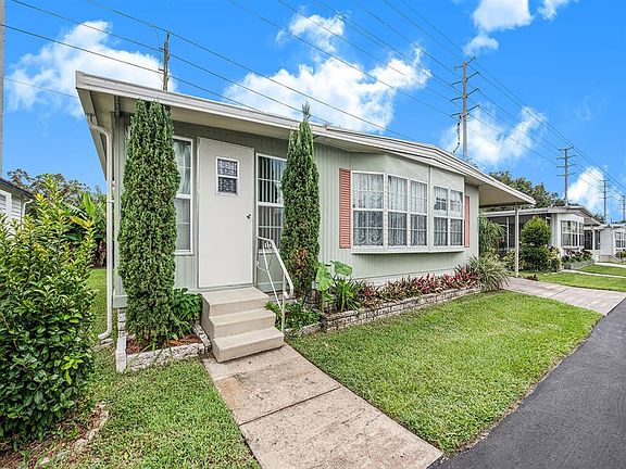 ATTENTION SNOWBIRDS OR SENIORS MOVING TO THE SUNSHINE STATE! Spanish Trails Village is a beautiful 55+ Gated Park that is centrally located in Florida. This is a wonderful place to live and enjoy the sunshine all year long! NO LOT RENT, YOU OWN THE LAND! Close to all kinds of shopping, restaurants, and medical facilities (Hospital is just across the street) you don't have to drive far for anything. This Furnished 2 bedroom, 2 bath home has a new A/C (2021), new Main Electrical (2022), new Roof with Limited Lifetime Warranty (2011), new bathroom vanities, sinks, fixtures, and toilets (2022) and a water softener. New carpet in the bedrooms. The Florida room has a new ductless Mini Split A/C and Heat Pump(2022) so with it under A/C, you can use the room as a flex space for whatever you enjoy. The washer and dryer stay and are located in the shed/laundry. This Home is Sold AS-IS. Covered parking on the carport. Spanish Trails has a pool in the community and golf carts are allowed. New owners will need HOA approval which is standard. What are you waiting for? Come add your personal touches and make this your new home!! Call Today!