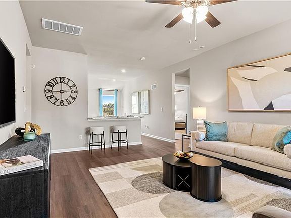This new single-story home is ready for modern lifestyles. An open-concept floorplan shared between the kitchen and living room encourages simple everyday transitions and multitasking. Three secondary bedrooms are tucked away to the side of the home, opposite from the luxurious owner’s suite with a full bathroom and walk-in closet. Prices, dimensions and features may vary and are subject to change. Photos are of the model home of this plan, and color and finish selections may vary. Model Home Hours Tues, Wed, Thur, Sat 10 AM to 6 PM, Fri 1130 AM to 6 PM