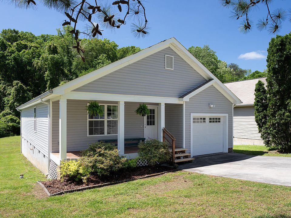 Highly sought after Lookout Valley! Three bedrooms, 2 full bath home located just right off Browns Ferry exit, close to downtown and with a nice level yard! This home has charm and character with its cathedral ceilings and OPEN floor plan! The kitchen is great with its solid wood freshly painted white cabinets. This kitchen offers stainless steel appliances with bar separating dining and family room. New butcher block counter tops and cabinet hardware, new stainless steel sink with new faucet, fresh paint throughout, new light fixtures, new bathroom fixtures and mirrors, new LVP flooring in main area and baths, carpet in bedrooms. One Car garage. Back yard area with fencing on each neighboring borders. Sellers are Owner/agents