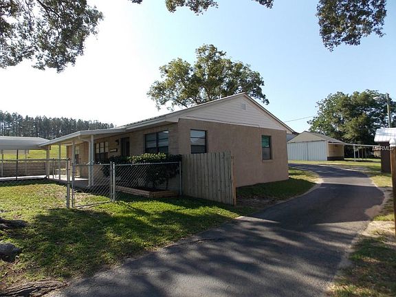 Orange Grove Villas - A cozy 3 bedroom, 1 bath block stucco home under a metal roof on a partially fenced .45 acre lot. Located at the end of a paved road with excellent elevation. Property formerly owned by a successful mechanic who made use of the 2 sheds, 6 carports and 30x21 venulated workshop. Enough carports for cars and boats and all your toys. There is even room for a car lift under one of the carports. This is a "shade tree mechanics" dream come true as it is perfect for home based auto repair business. Front yard is completely fenced in with chain link, perfect for containing pets. Spacious concrete front porch with great covering. The kitchen has original 42" custom cabinets, ceramic tile, a gas range and an eat-in dining room with french doors leading out to the covered screened lanai. Propane tank is rented from Suburban propane. Newer A/C unit in excellent working condition. This property is perfectly located between Dade City and Zephyrhills. Only minutes from all your big box stores. No deed restrictions, no HOA fees and no regulations holding you hostage and not in a flood zone. A private community well, only $25/month for endless water usage.