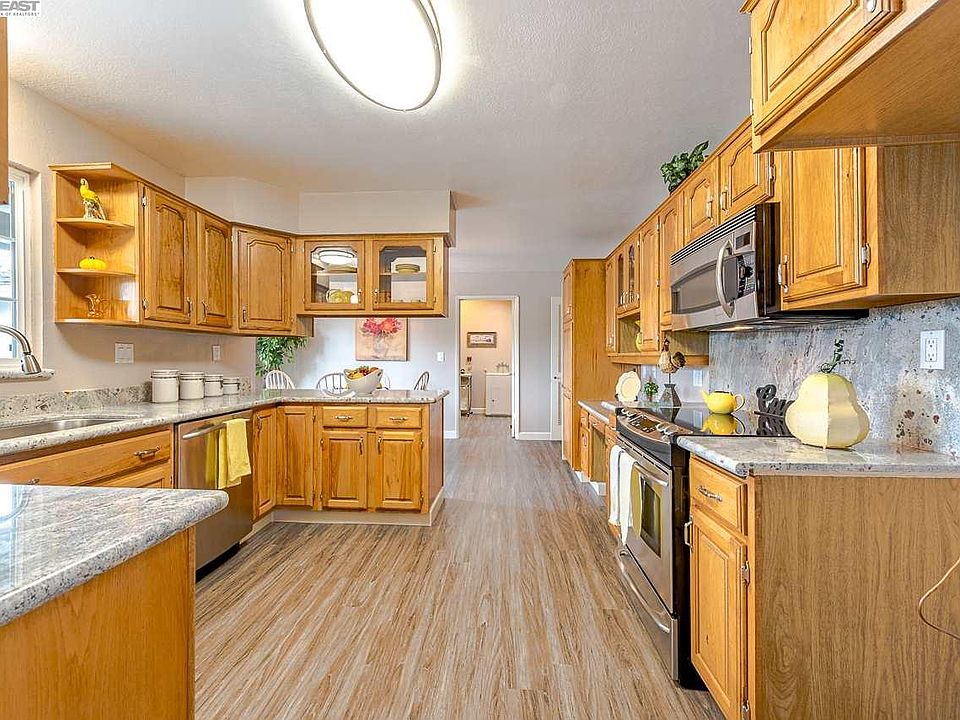 - KITCHEN FEATURES: Dishwasher, Eat In Kitchen, Electric Range/Cooktop, Garbage Disposal, Microwave, Breakfast Nook, Updated Kitchen, Counter - Stone